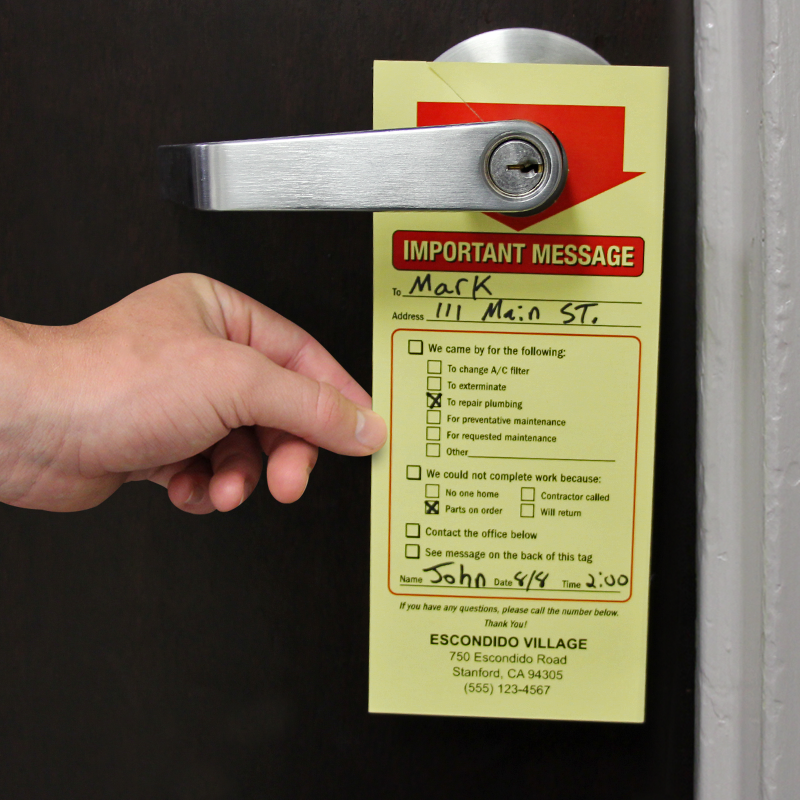 Arrived much sooner than expected and of great quality. Custom printing was accurate and properly done, unlike some where they stamp onto pre-printed templates and it comes out crooked. These are a must-have for employee safety and peace of mind for tenants. Highly recommend to anyone in the property management field.