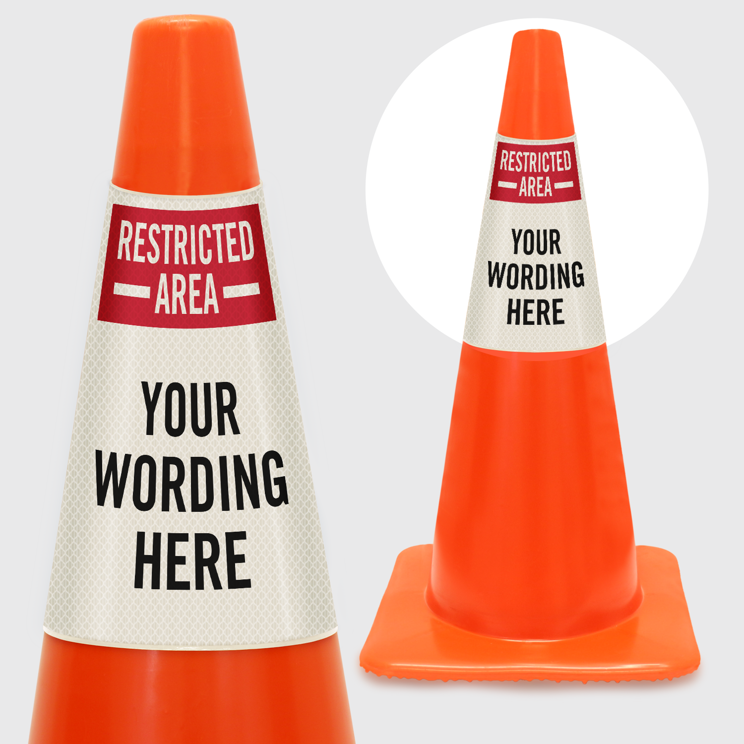 This Restricted Area Cone Collar can be customized with a personalized text.