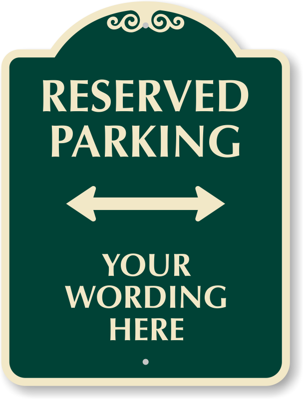 Contemporary border with motif and dome shape, designer color options, customizable message, and arrow option make this Custom SignatureSign Reserved Parking a great choice for parking lots.