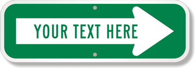 Customize your one way sign. Add your special directional text to our custom green right arrow sign.