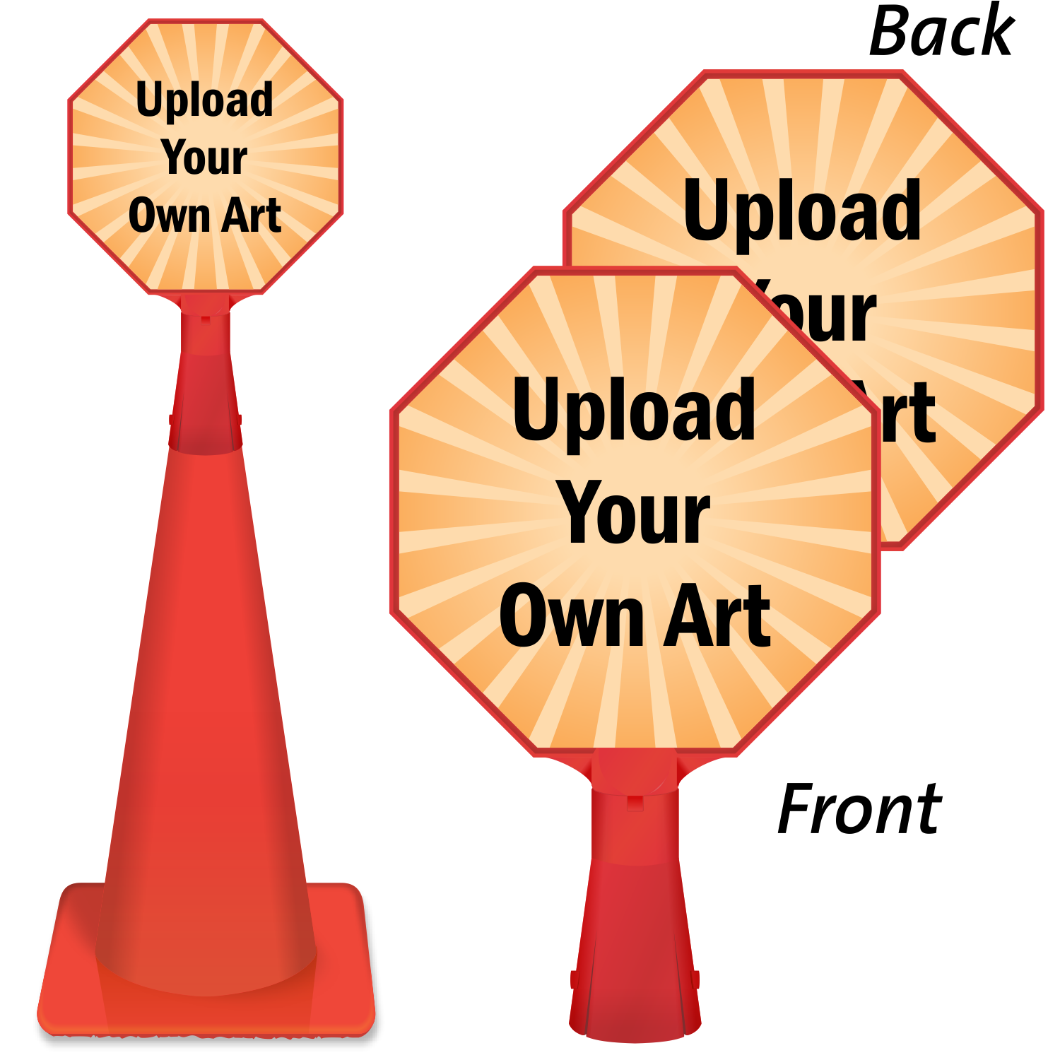 Convert a standard cone into a highly visible custom sign by uploadingyour own artwork.