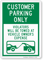 Give your customers first priority for parking. Prevent unauthorized parking with a tow-away sign.