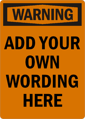 It's easy to create your own "warning" sign. Just add your exactly the text you want, then choose a size and material. Custom warning message allows user to include specific hazardous conditions or additional safety text that standardized signs fail to relay.