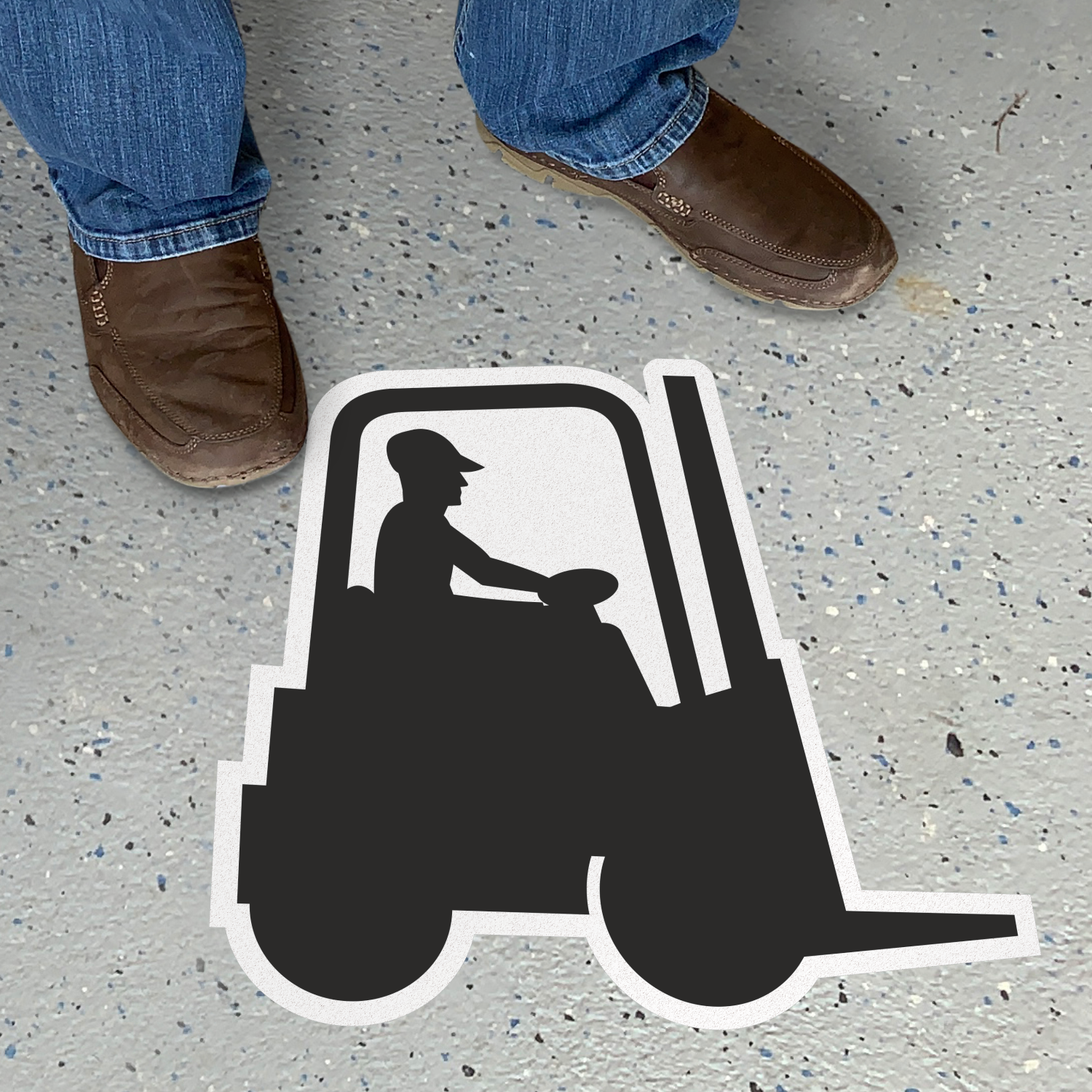 Convey forklift movement direction with this cut-to-shape adhesive floor sign. You may choose the direction that you want the forklift to point towards.