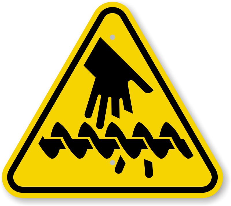 A running auger can instantly sever fingers. Use this ISO Triangle Warning Sign in your tool area so that everyone remains careful while handling such equipments.