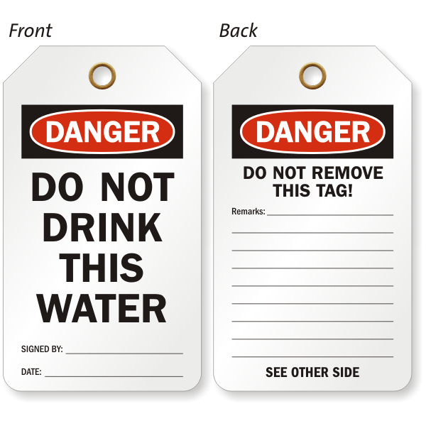 2-Sided OSHA Danger Safety Tag : Do Not Drink This Water Tag TG-0503