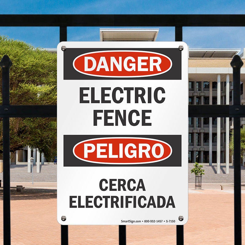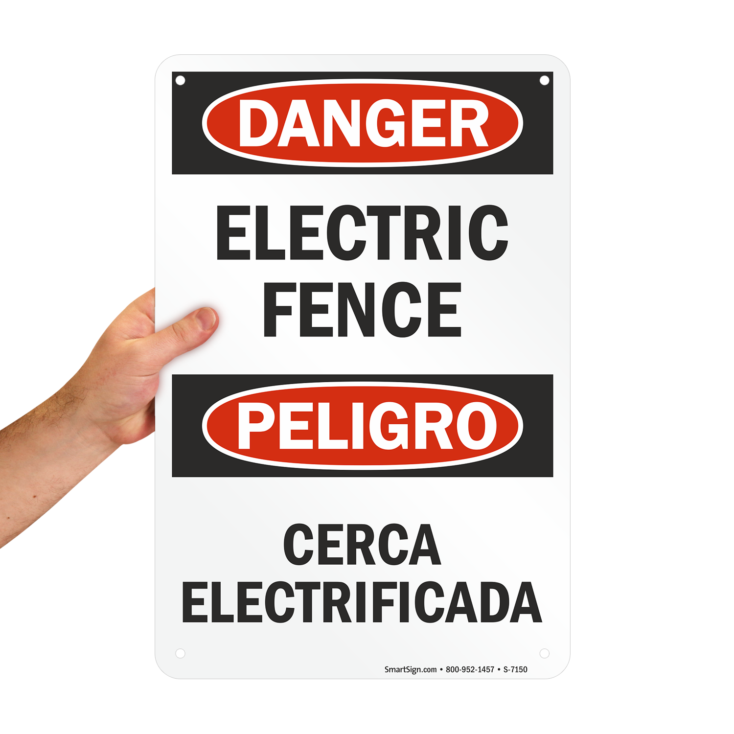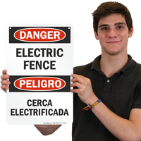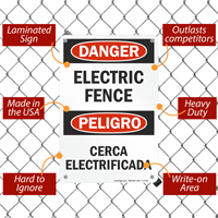 Post signs to alert and warn people of the dangers of an electric fence. Bilingual signs ensure that you are understood.