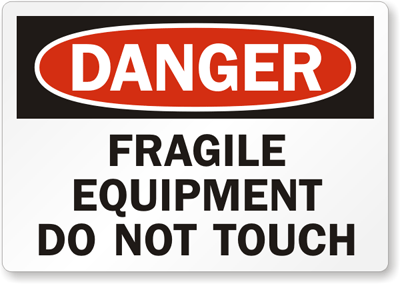 OSHA Danger Label: Fragile Equipment Do Not Touch L-0073-XV