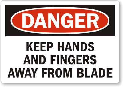 OSHA Danger Label: Keep Hands And Fingers Away From Blade L-0076-XV