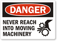 OSHA Danger Label: Never Reach Into Moving Machinery L-0092-XV