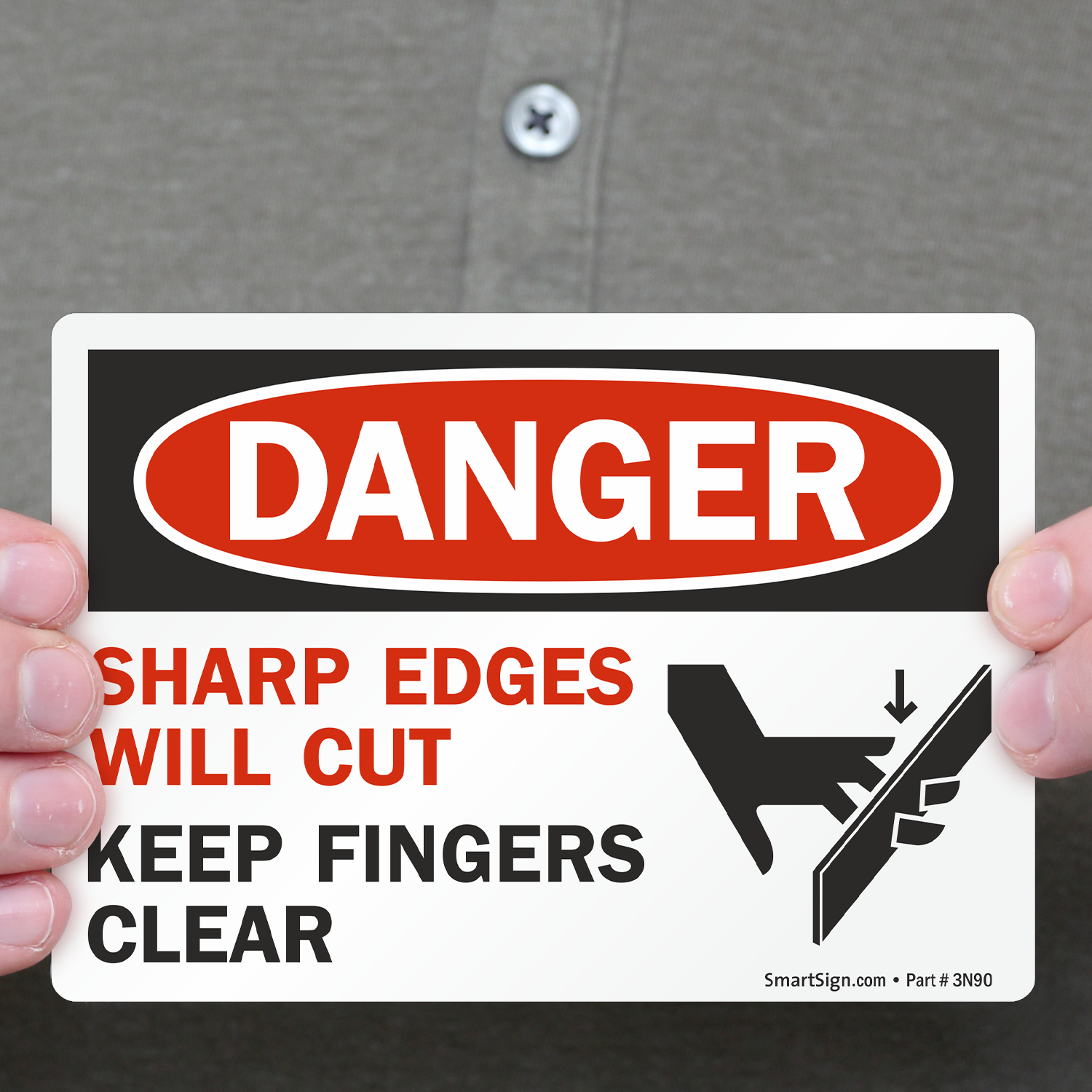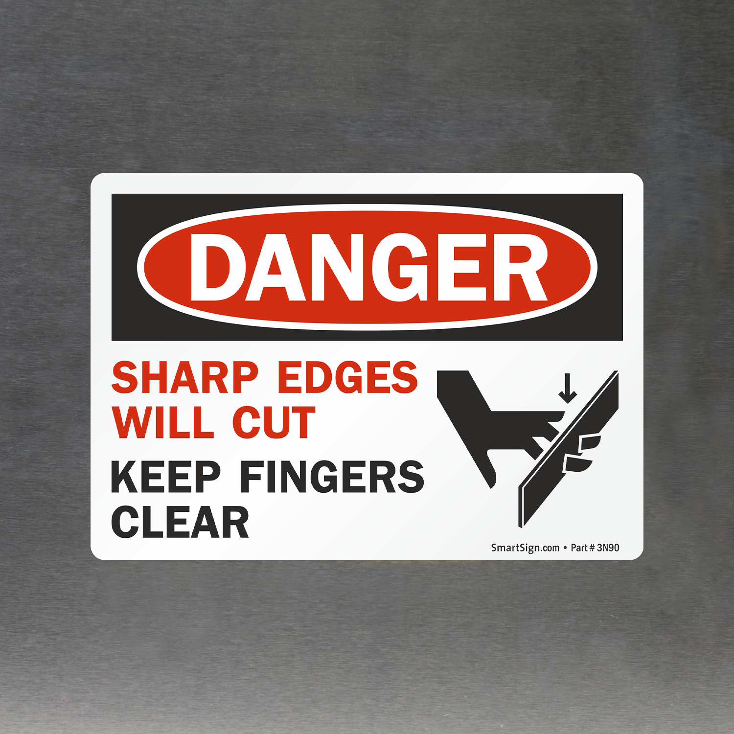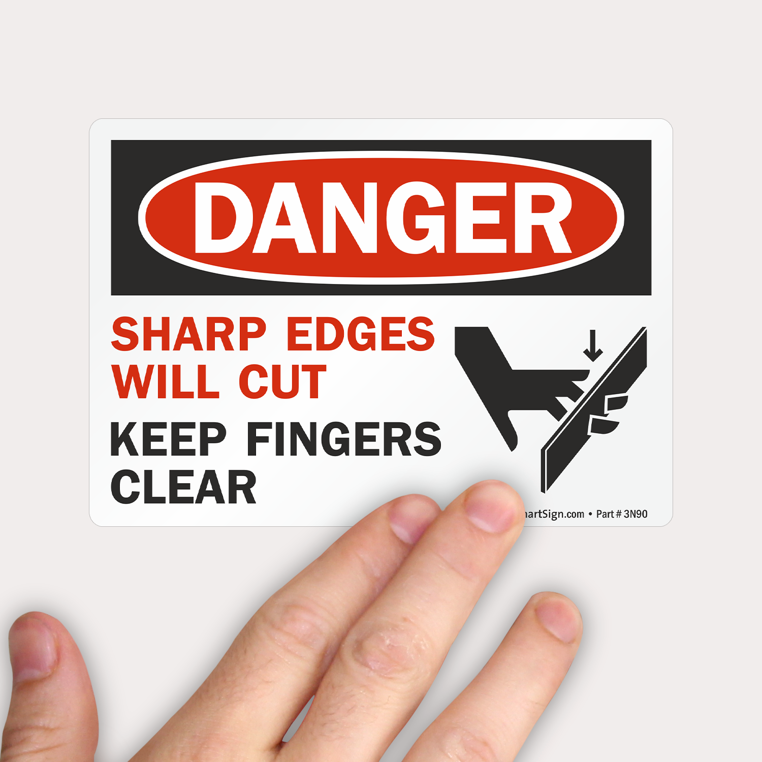 3.5in. x 5in. Set of 5 Laminated Vinyl Labels: OSHA Danger - Sharp Edges Will Cut Keep Fingers Clear L-0097-VS