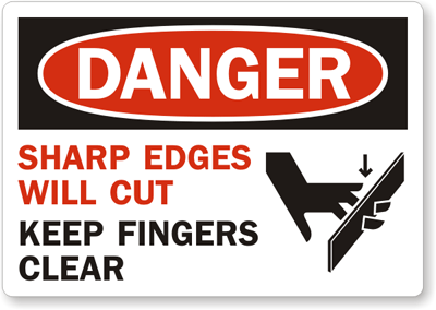 OSHA Danger Label: Sharp Edges Will Cut Keep Fingers Clear L-0097-XV