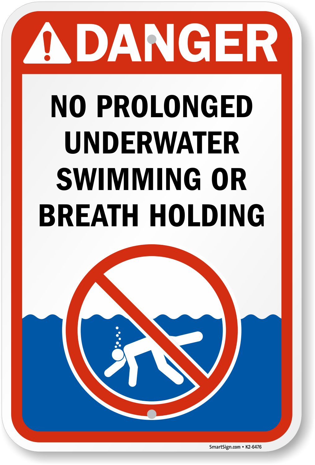 Prolonged underwater swimming or breath holding can lead to a lack of oxygen in the body, resulting in hypoxia, blackout, or even drowning. Therefore, this Pool Safety Sign is a great reminder to individuals of the potential risks.