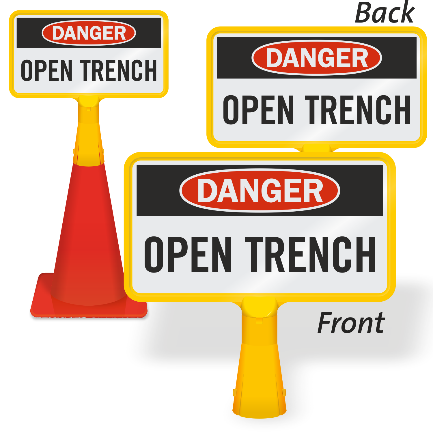 Display this highly visible no-tip, portable Traffic Cone Sign near open trenches and prevent accidents.