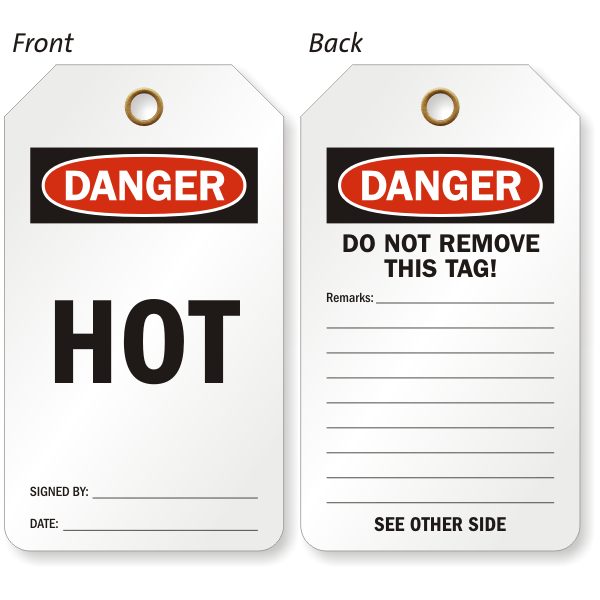 Label hot machines, tools, and other hot objects in your facility with our Double Sided OSHA Danger Safety Tag.
