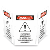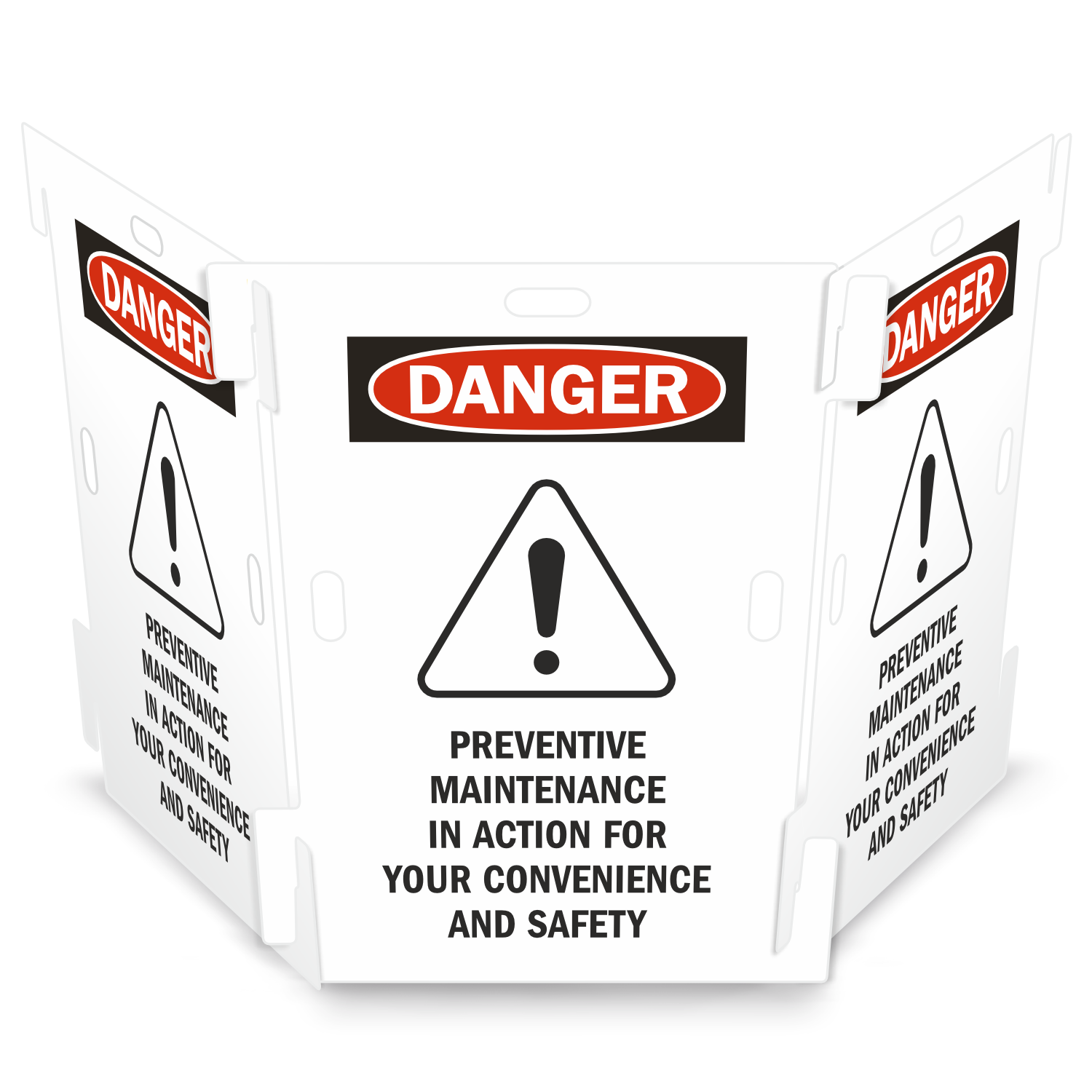 Interlocking Barricade Sign: Danger: Preventative Maintenance in Action for Your Convenience and Safety SF-1460
