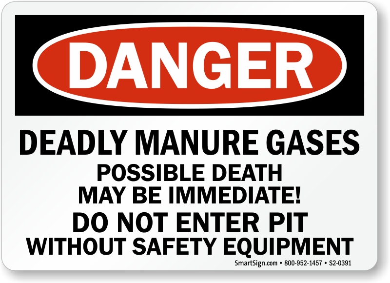 OSHA Danger Sign: Deadly Manure Gases - Possible Death May Be Immediate! Do Not Enter Pit Without Safety Equipment