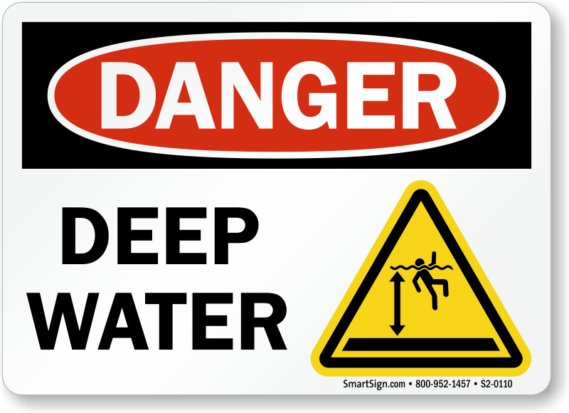 OSHA Deep water sign with an ISO prohibition symbol effectively warns everyone around.
