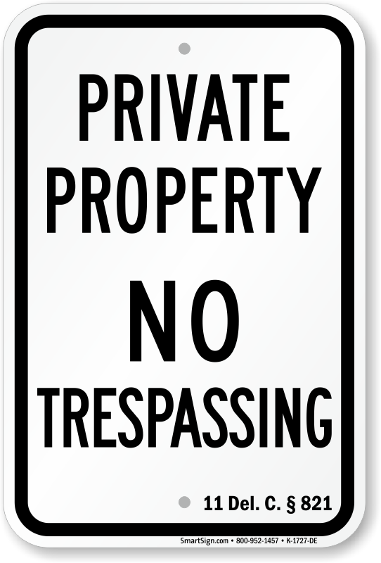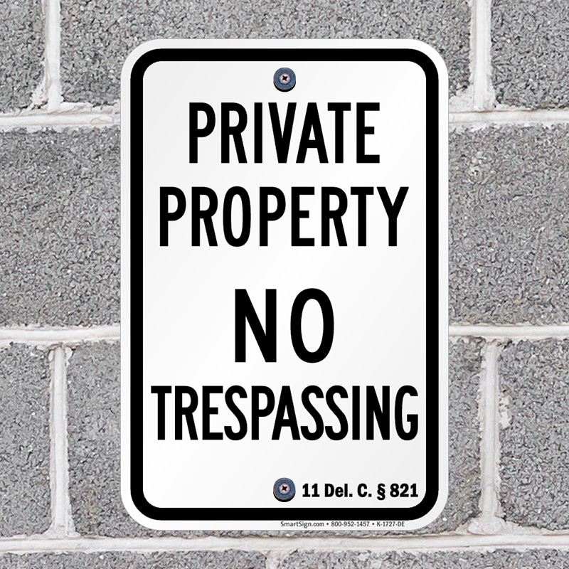 Delaware No Trespassing Sign: Private Property – DE Code § 821 K-1727-DE Learn More...