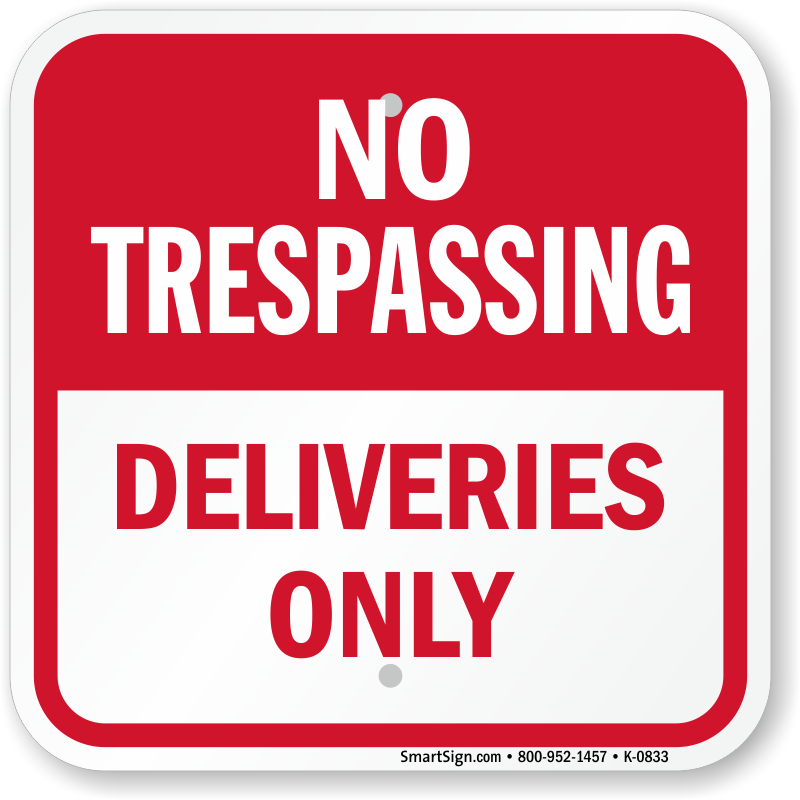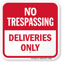 If access is permitted for deliveries only, post this No Trespassing sign and keep all visitors informed. Highly durable sign is weatherproof, rust proof, and resists abrasion.