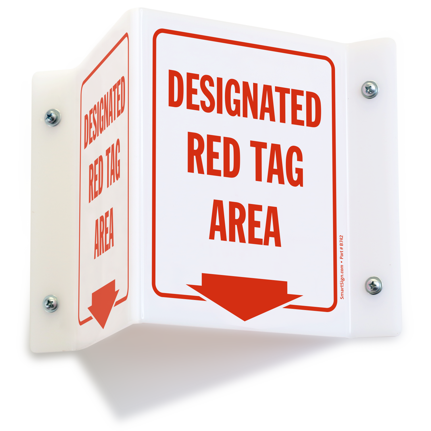 Demarcate the Red tag area in your facility by using sign with a down arrow and text printed on two sides.