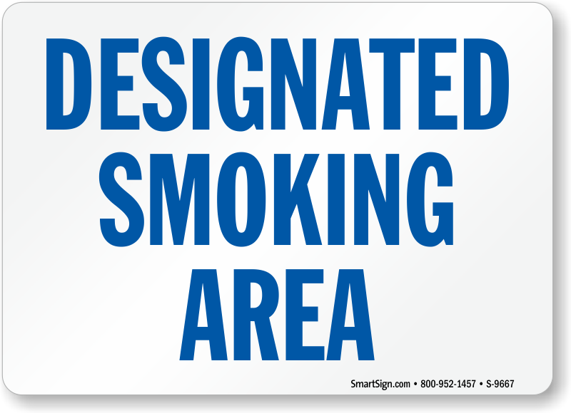 Smoking Zone: Designated Smoking Area Sign (blue text) S-9667