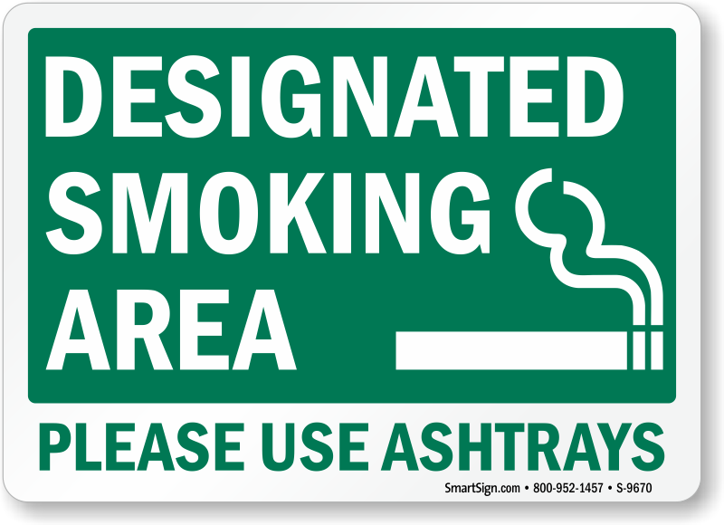 Smoking Zone: Designated Smoking Area Sign Please Use Ashtrays (green) S-9670