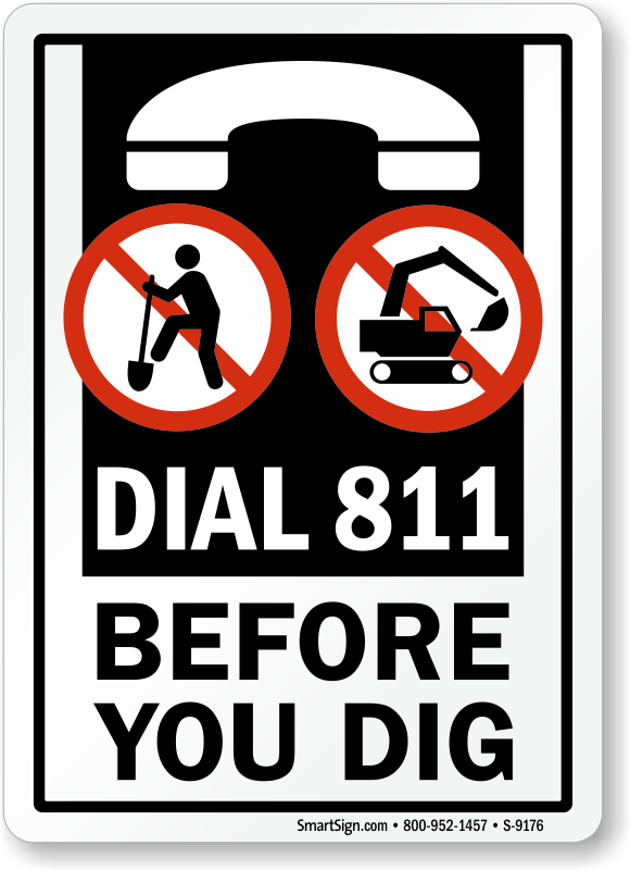 No Digging Sign: Dial 811 Before You Dig (With No Manual And Machine Digging Graphic) S-9176