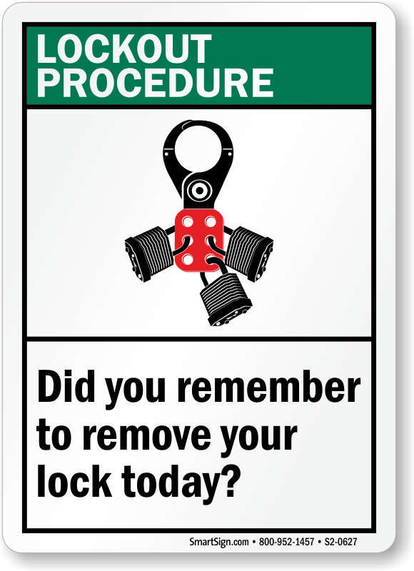 Lock-Out Sign: Lockout Procedure - Did You Remember To Remove Your Lock Today (With Locks & Hasp Graphic)