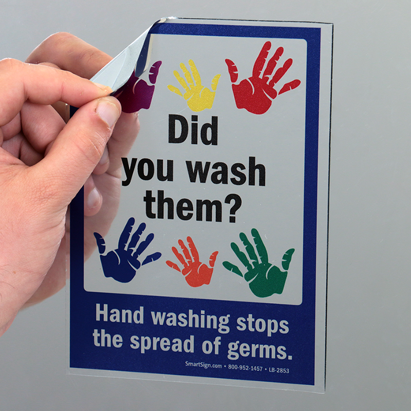 This Wash Hands Mirror Decal is ideal for school bathrooms. Brushed metal surface imparts a professional touch to the decal.