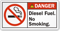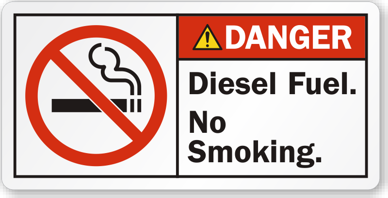 With a no smoking symbol, this label reminds employees and visitors of the dangers of smoking around flammable diesel fuel.
