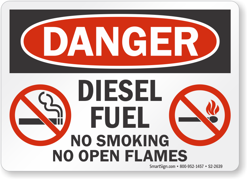 OSHA Danger Sign: Diesel Fuel - No Smoking, No Open Flames
