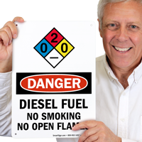 Alert first responders and anyone in your facility with this OSHA Danger sign featuring NFPA hazcom warning symbols. This sign has the NFPA numbering system 0 for the health hazard indicating there is a normal health hazard risk.