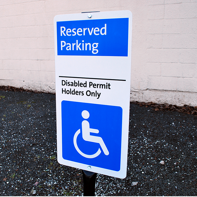Simple and clear, this iParking Sign gets straight to the point – that parking is permitted only for disabled people carrying legitimate permits. Neat and clear design with a clear legend make this ADA iParking Sign a hit with customers.
