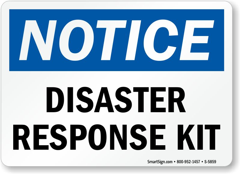 A Disaster Response Kit speeds up critical rescue process and ensures safety for all. Identify vital safety equipment quickly during emergency with a simple OSHA Notice Sign.
