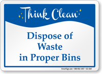 Think Clean Sign: Dispose Of Waste In Proper Bins S2-1567