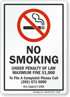 These District of Columbia No Smoking signs clearly convey your smoking policies at any entrance.