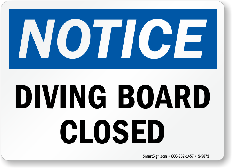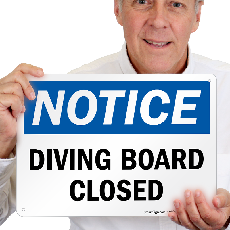 Diving can be dangerous! Inform swimmers that diving board is closed with this bold and effective OSHA Notice Sign.