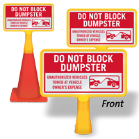 ConeBoss Sign: Do Not Block Dumpster - Unauthorized Vehicles Towed At Vehicle Owner's Expense (Front/Back)