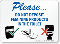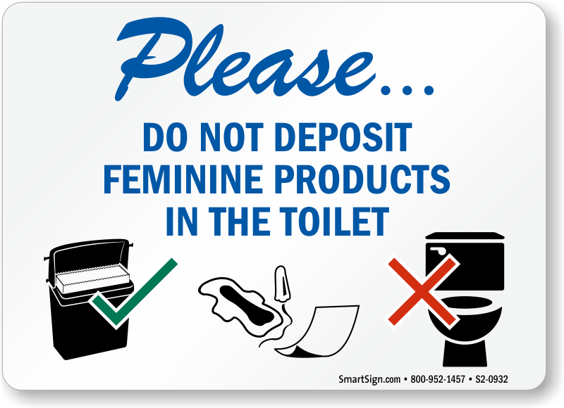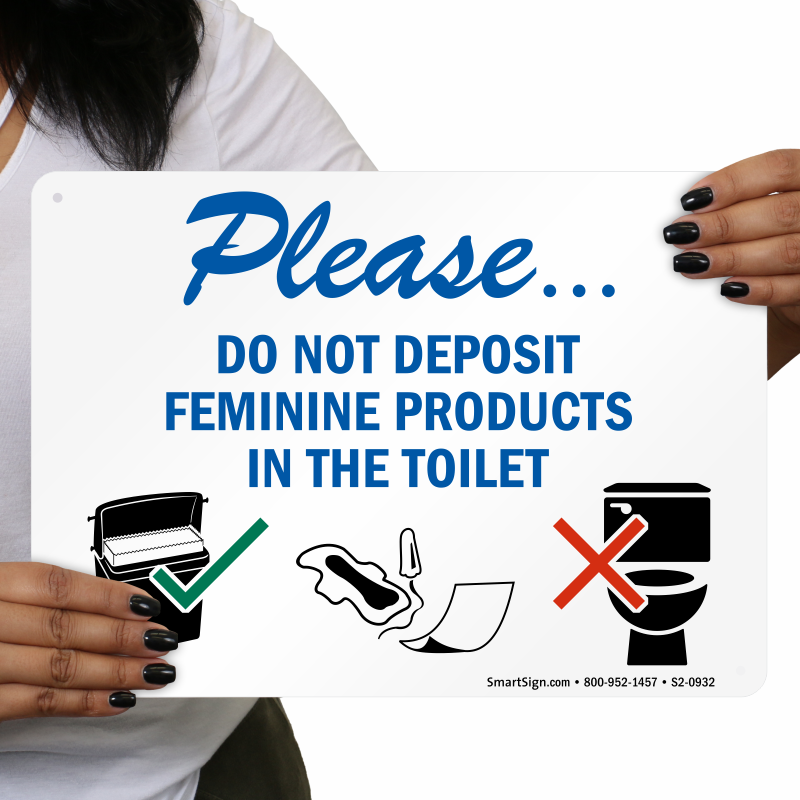 Say it with the help of pictos! Feminine Hygiene Sign breaks linguistic barriers, clearly explains that sanitary products should not be flushed. Ideal for bathrooms visited by multi-cultural users.