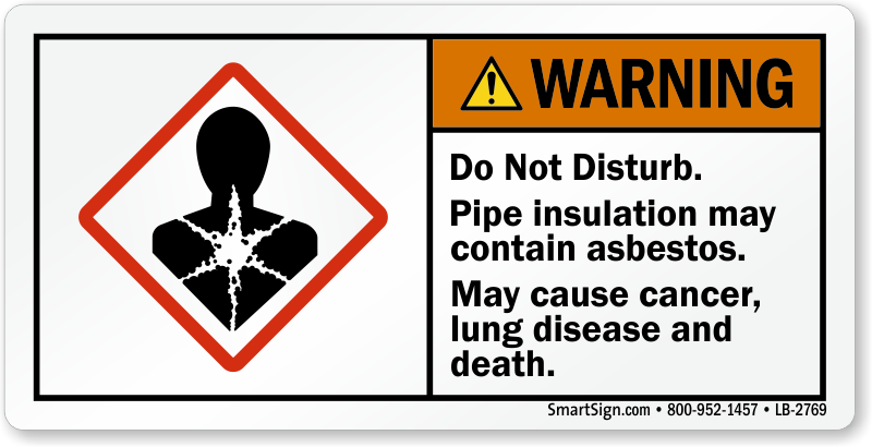 ANSI Warning Safety Label: Do Not Disturb Pipe Insulation May Contain Asbestos May Cause Cancer, Lung Disease And Death (With GHS Symbol) LB-2769