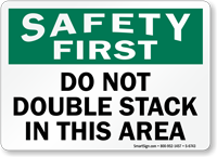 Use this Safety First Sign to prevent workers against double stacking in the area. Clear and simple header reminds everyone to prioritize safety.
