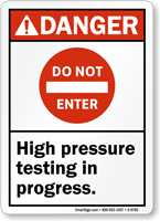Stop unwanted interruptions while an important testing is in progress. Use a 'Do Not Enter - High Pressure Testing in Progress' sign. Sign prevents accidents.