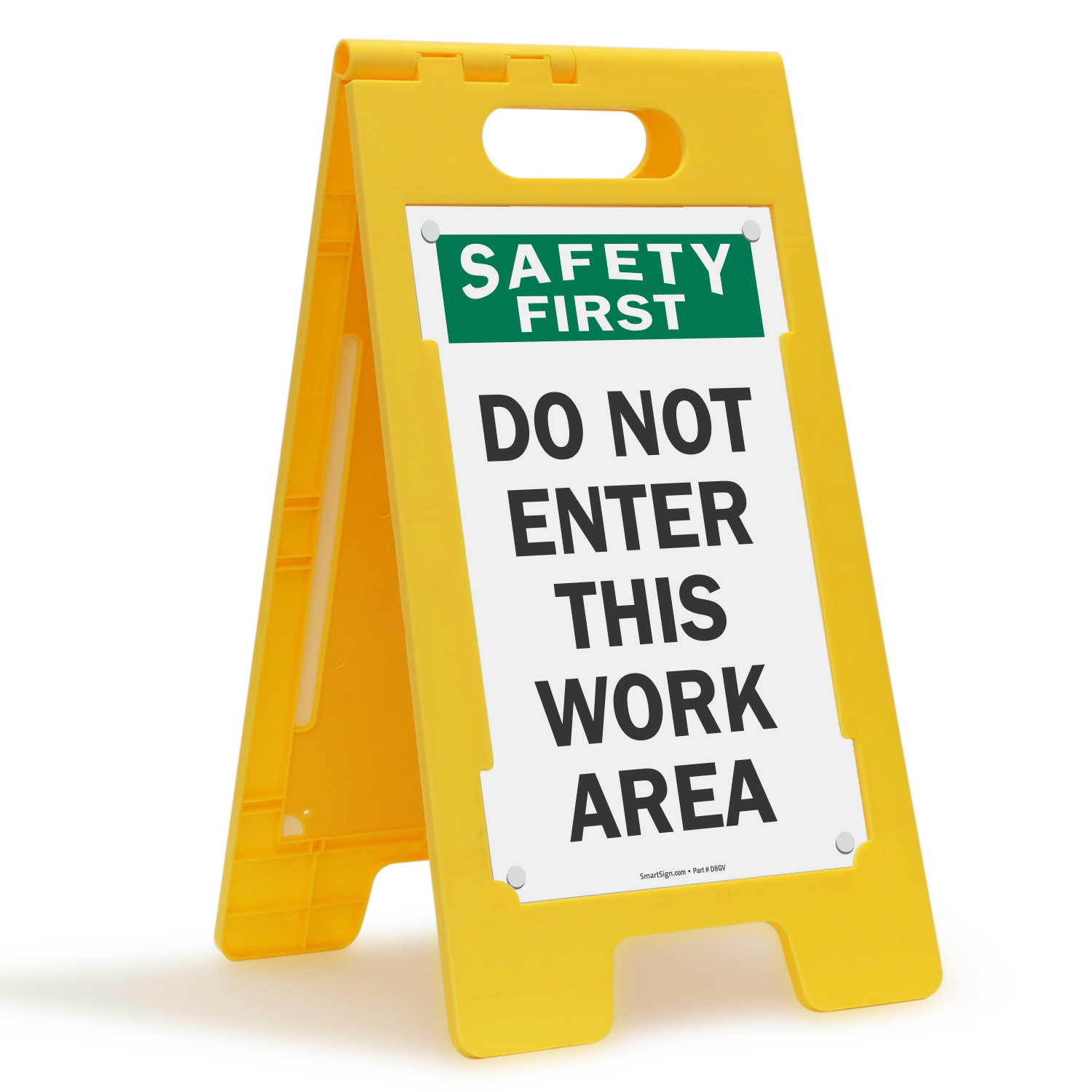 Hazards can come in many forms, but installing a sign is the best way to prevent accidents. Use a 'Safety First - Do Not Enter This Work Area' Floor Sign.