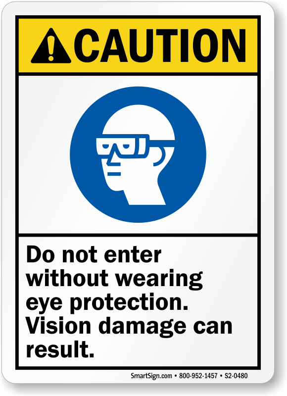 ANSI Caution Sign: Do Not Enter Without Wearing Eye Protection, Vision Damage Can Result (With Graphic) S2-0480