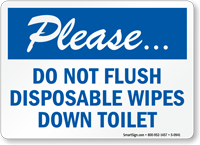 Putting up bathroom etiquette signs is the first step towards maintaining a clean bathroom and sewer. Instruct users not to flush disposable wipes down the toilet.