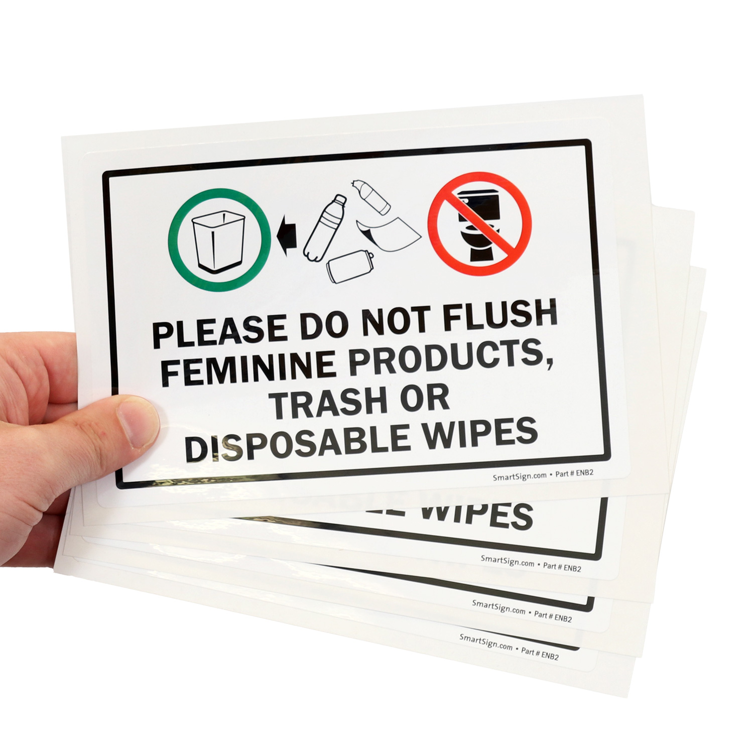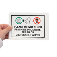 Post a clear reminder not to flush feminine products or trash. Helps maintain restroom hygiene and prevent plumbing issues.
