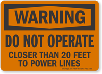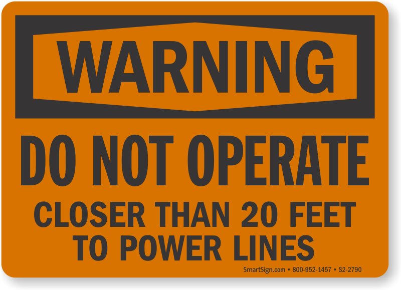OSHA Warning Sign: Do Not Operate, Closer Than 20 Feet To Power Lines S2-2790