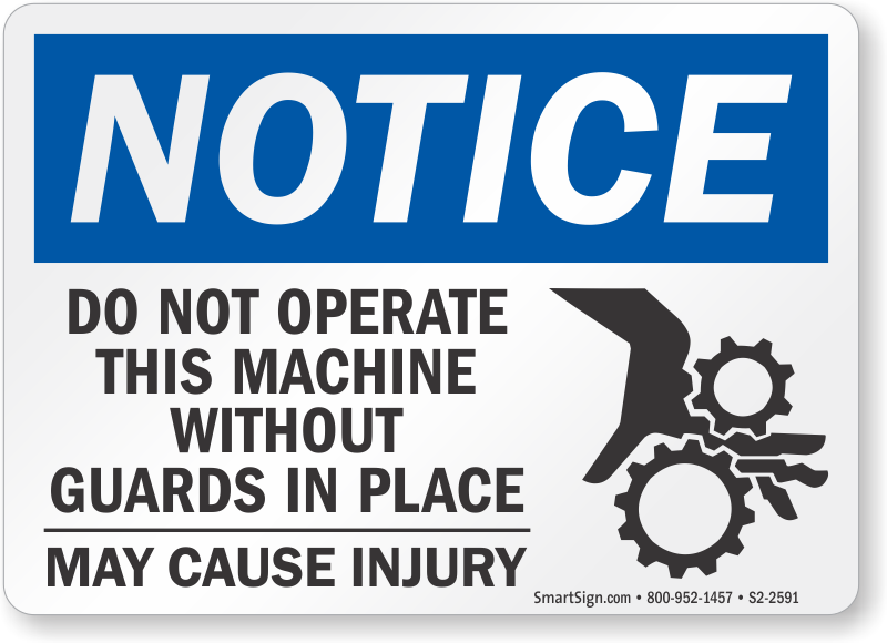 OSHA Notice Sign: Do Not Operate This Machine Without Guards In Place, May Cause Injury