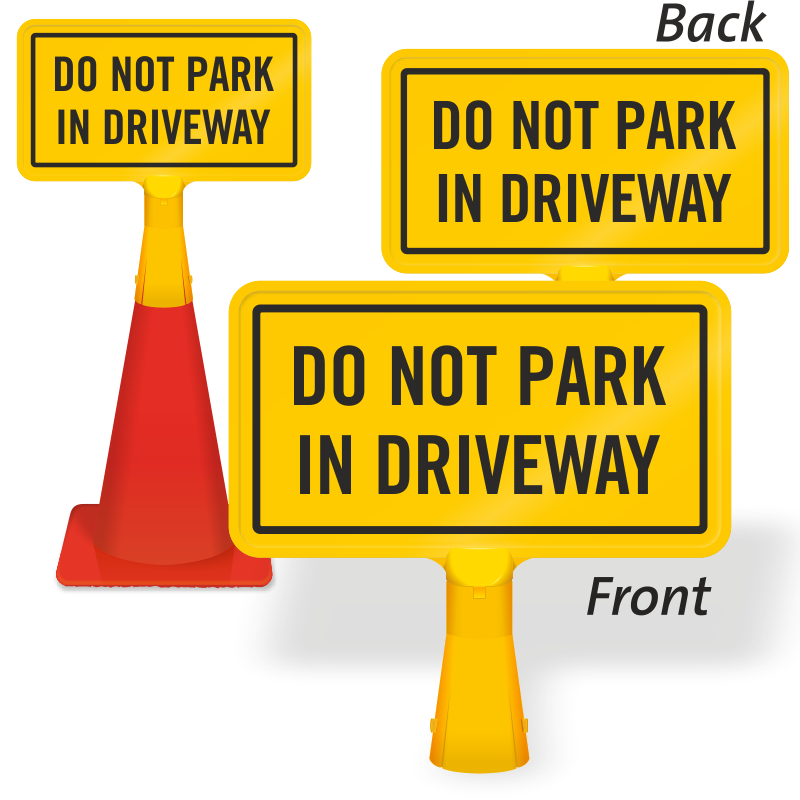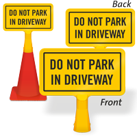 This all yellow Do Not Park in Driveway ConeBoss Sign effectively conveys your parking regulation.